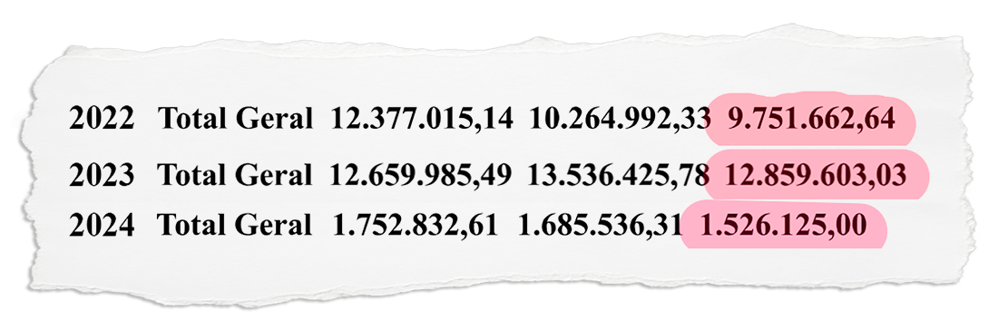 A Cootransmundi foi contratada em maio de 2022 e naquele ano recebeu pagamentos no total de R$ 9.751.662,64, faturamento que subiu para R$ 12.864.603,02 em 2023. Este ano, pelo que consta no sistema que registra as despesas pagas pela administração municipal, já foi pago a ela a soma de R$ 1.526.125,00, recebimentos de exatamente R$ 24.137.390,67 entre maio de 2022 e março de 2024.