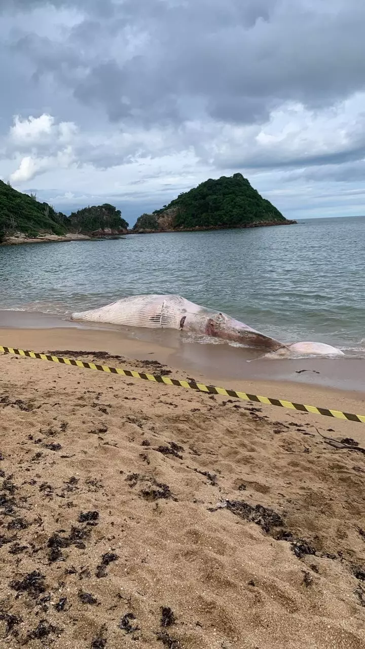 Nesta segunda-feira (30), pescadores encontraram uma carcaça de Baleia-de-Bryde (Balaenoptera brydei) em estado avançado de decomposição na Praia da Rasa, em Búzios. O corpo da baleia, com uma corda em volta, foi levado à faixa de areia, onde a Secretaria do Ambiente e Urbanismo isolou a área e acionou o Grupo de Estudos de Mamíferos Marinhos da Região dos Lagos (GEMM-Lagos) para realizar a necropsia e indicar o local do enterro.